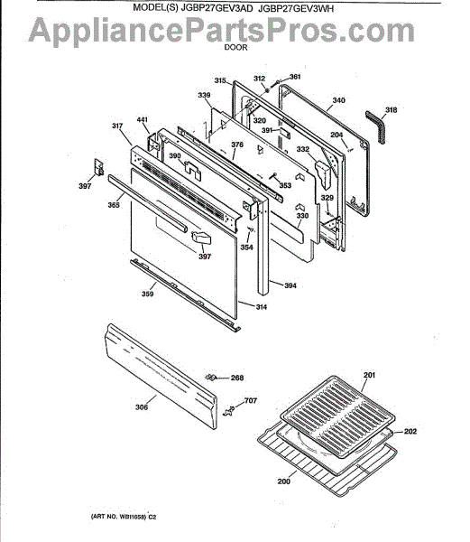 Parts for Ge JGBP27GEV3WH: 04 - Door Parts