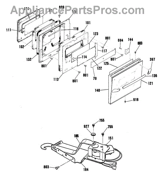 This oven door latch assembly secures the door during the self-clean cycle and reports lock status to the control. Replace a worn or failed latch to restore safe locking and reliable self-clean operation.