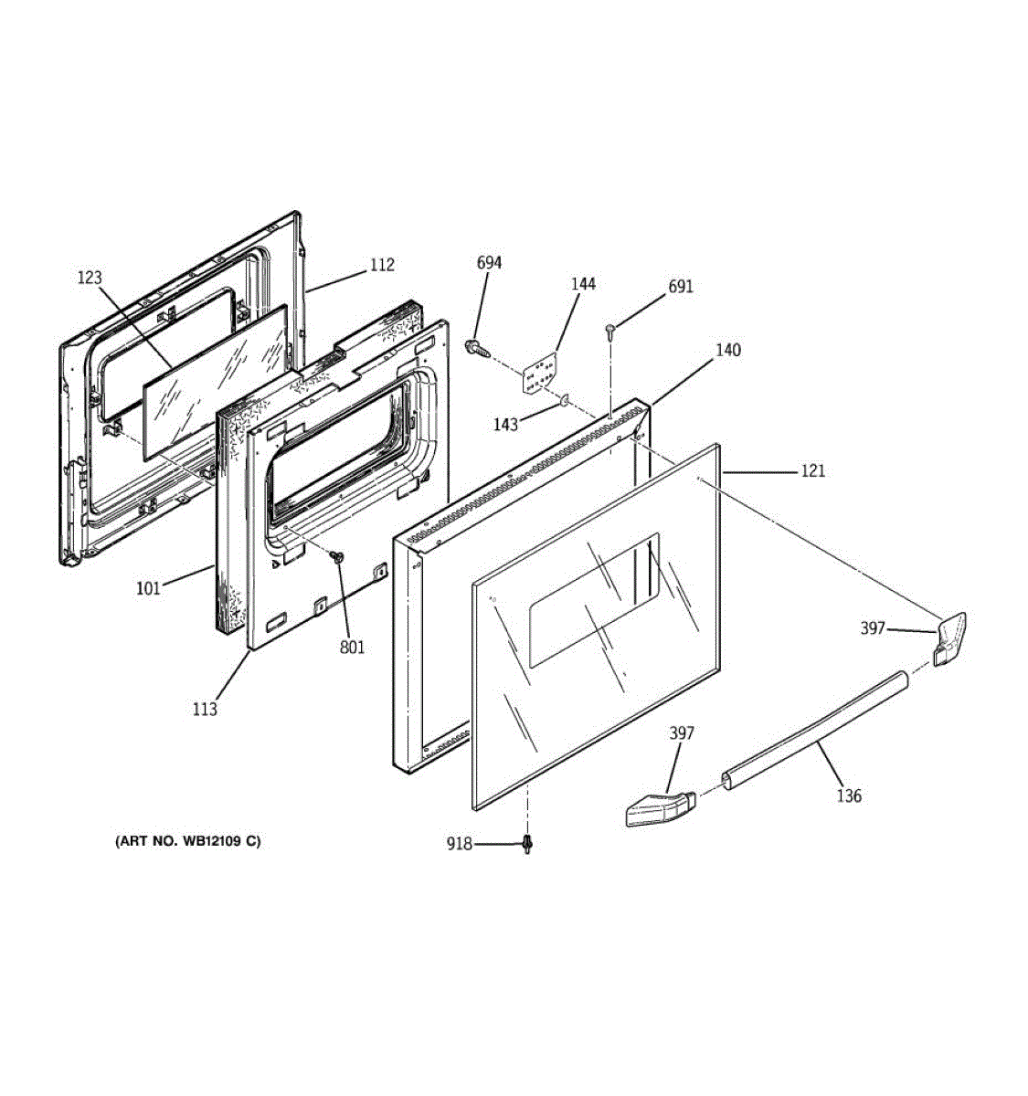 Center glass panel for oven door. Installs between inner and outer door panels. Replace if cracked, broken, or heat-damaged for safety and visibility.