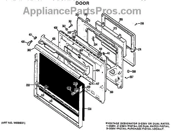 Parts for Ge JKP16G*D2: Door Parts