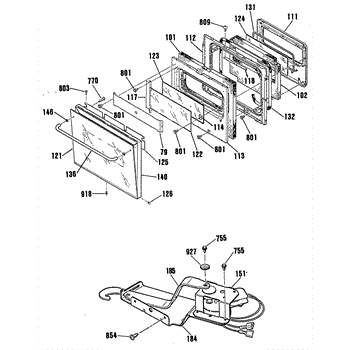 This oven door latch assembly secures the door during the self-clean cycle and reports lock status to the control. Replace a worn or failed latch to restore safe locking and reliable self-clean operation.