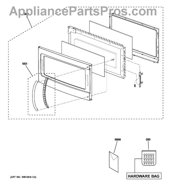 The Handle Assembly is an OEM part for GE microwaves. It is used to provide a secure grip for opening and closing the microwave door, ensuring easy and safe access to the microwave interior.