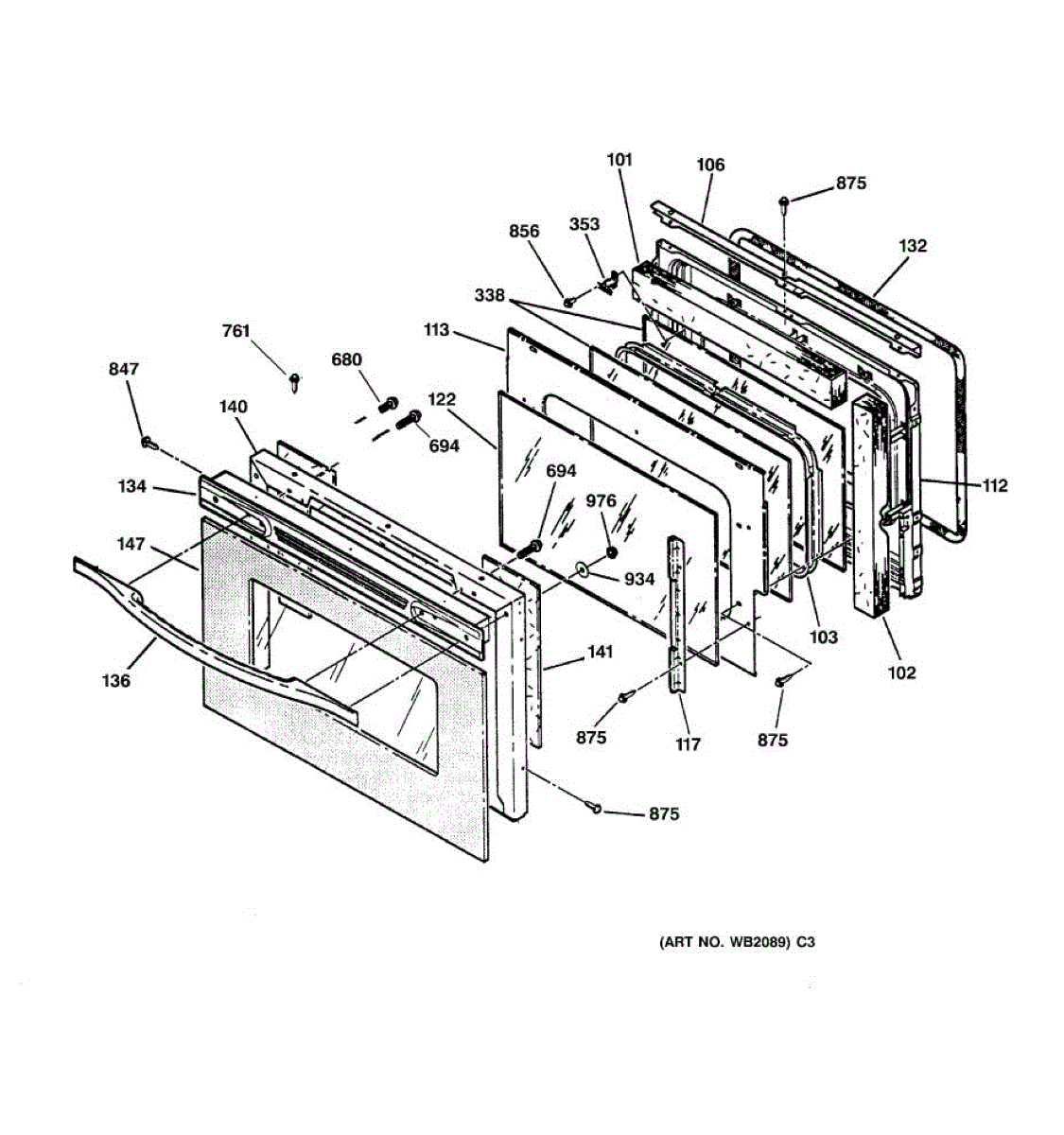 Inner oven door glass installs inside the door cavity behind the outer panel. Replace if shattered, cracked, or broken to restore viewing window function.