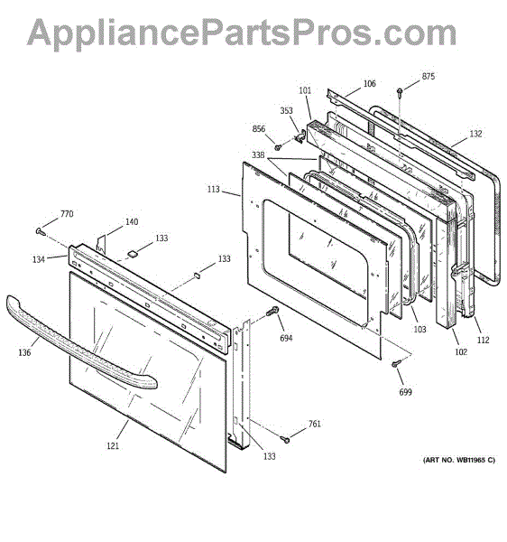The Window Pack is an OEM replacement part for GE ovens. This assembly includes the glass window for the oven door, allowing users to view the contents of the oven without opening the door and disrupting the cooking process.