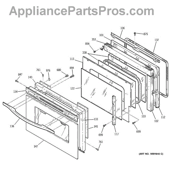 The Window Pack is an OEM replacement part for GE ovens. This assembly includes the glass window for the oven door, allowing users to view the contents of the oven without opening the door and disrupting the cooking process.