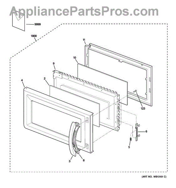 Parts for Ge JVM1631WH003: 01 - Door Parts