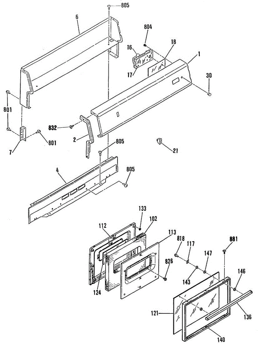 Plastic spacer that fits between range door panels to maintain proper spacing. Replace if cracked, broken, or missing to restore door alignment.
