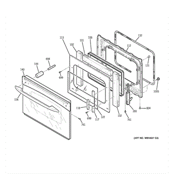Inner oven door glass installs inside the door cavity behind the outer panel. Replace if shattered, cracked, or broken to restore viewing window function.