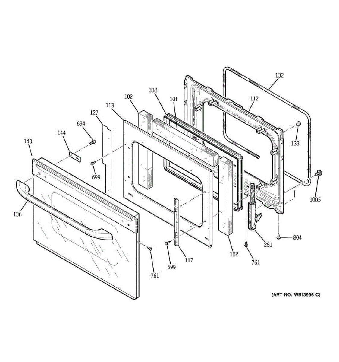 Complete oven door assembly for your range. Replaces damaged, cracked, or broken door panels. Restores the appearance and proper closure of your oven door.