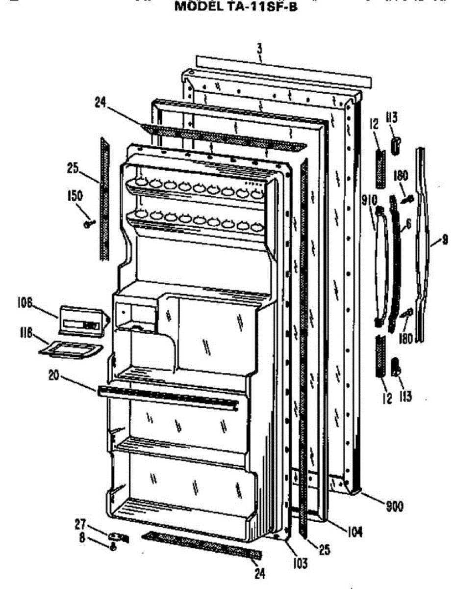 Parts for Ge TA11SFB: Door Parts