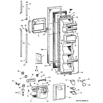 The Ice Door Assembly is an OEM part for GE refrigerators. It is integral to the ice dispenser system, controlling access to the ice chute. This component ensures the efficient delivery of ice cubes or crushed ice when activated and seals off the chute when not in use to maintain the freezer's temperature and prevent frost buildup.