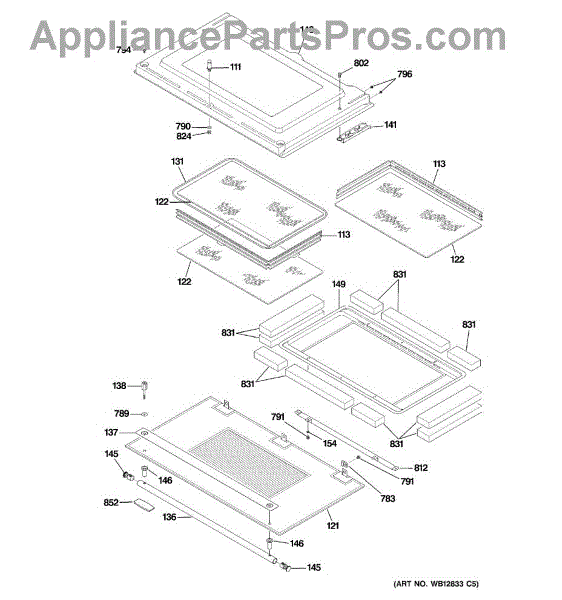This hinge provides the pivot point for the appliance door, keeping it aligned so it opens and closes smoothly. Replacing a bent or broken hinge restores proper latching, sealing, and overall door operation.