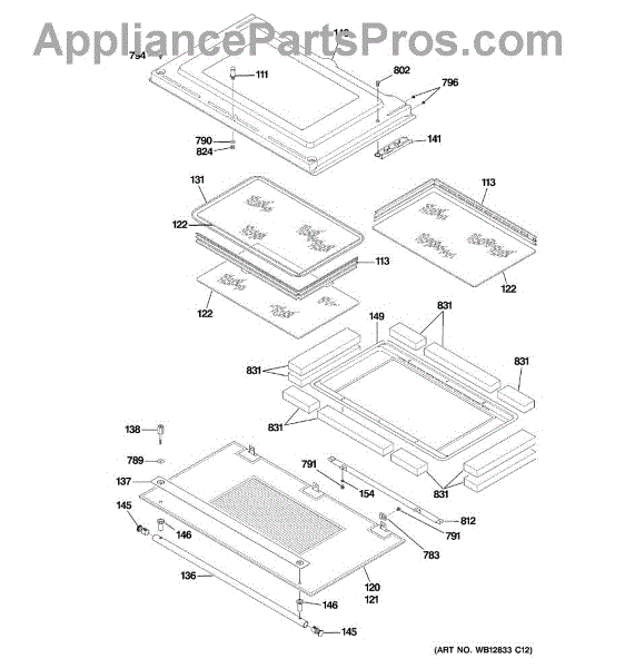 This hinge provides the pivot point for the appliance door, keeping it aligned so it opens and closes smoothly. Replacing a bent or broken hinge restores proper latching, sealing, and overall door operation.