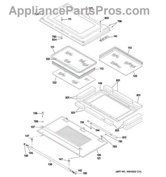 This hinge provides the pivot point for the appliance door, keeping it aligned so it opens and closes smoothly. Replacing a bent or broken hinge restores proper latching, sealing, and overall door operation.