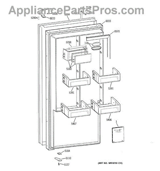Hinge kit for 36/42/48 inch side by side GE/Monogram refrigerators.