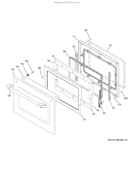 The Window Pack Assembly is an OEM part for GE ovens. This component includes the oven door window and its associated parts, providing visibility into the oven cavity during cooking. It helps retain heat within the oven while allowing users to monitor the cooking process without opening the door.