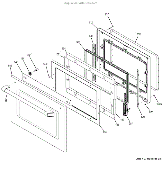 The Window Pack Assembly is an OEM part for GE ovens. This component includes the oven door window and its associated parts, providing visibility into the oven cavity during cooking. It helps retain heat within the oven while allowing users to monitor the cooking process without opening the door.