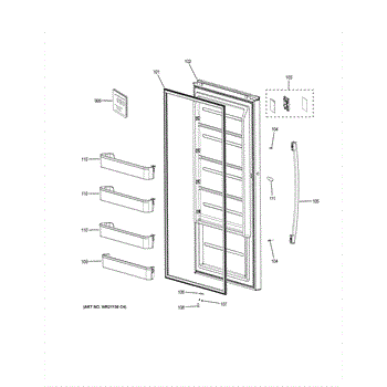 The Shelf Door Full Assembly is an OEM replacement part for GE freezers. It is a complete unit that includes the inner door panel, shelves, and all necessary components for the freezer door. This assembly is designed to provide convenient storage space within the freezer door itself, allowing for easy access and organization of frequently used items.