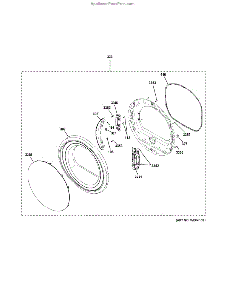 The Gasket Seal is an OEM component specifically designed for GE dryers. It is a crucial sealing component that lines the perimeter of the dryer door. The gasket seal helps create an effective air barrier when the door is properly closed and secured.