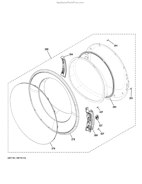 The Door Assembly is an OEM part for GE dryers. This part allows easy access to load and unload your laundry. The door assembly ensures a secure seal when closed, preventing heat and moisture from escaping the dryer drum. It features a sturdy handle for convenient opening and closing. A bad door assembly can occur due to wear and tear, damage, or faulty hinges or latches. If you notice symptoms such as difficulty in opening or closing the door, a loose or misaligned door, or heat escaping from the dryer drum, it may be time to replace this part. Symptoms of a bad door assembly include: