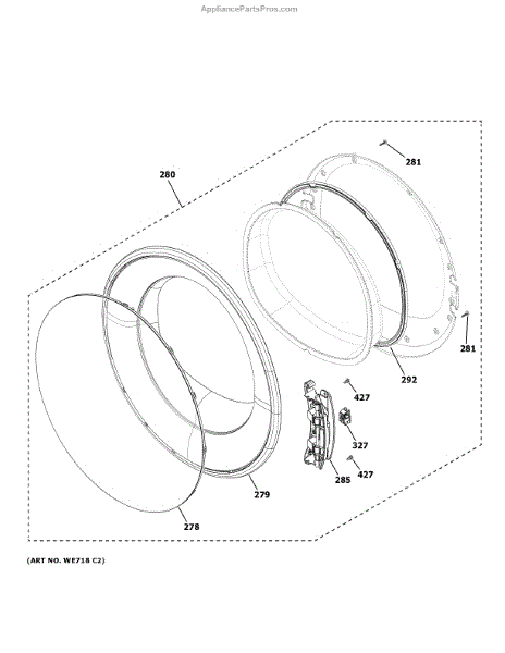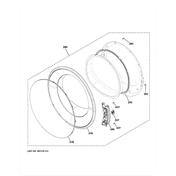 The Door Cover is an OEM part for GE dryers. Located on the external door, this cover protects the door lining while enhancing the dryer's aesthetic. It is responsible for safely concealing inner components from external impact or damage.