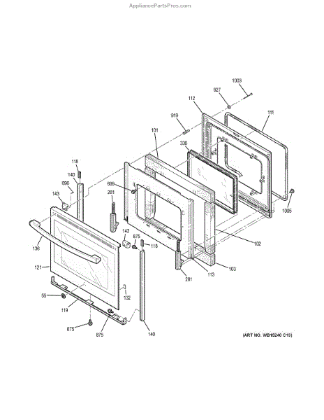The Window Pack Assembly is an OEM replacement part for GE electric ranges. It comprises the outer oven window and securing brackets that hold the glass in place. Causes of failure can include cracks in the glass from impact or thermal stress over time. Mounting brackets may loosen from normal use. Symptoms of a faulty window pack assembly include: