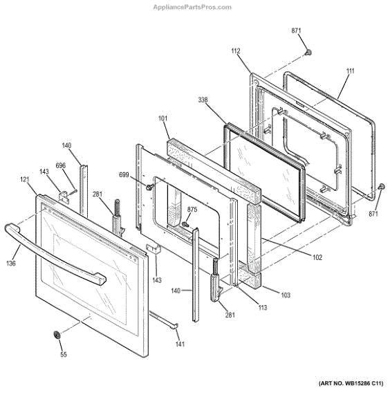 The Window Pack Assembly is an OEM replacement part for GE electric ranges. It comprises the outer oven window and securing brackets that hold the glass in place. Causes of failure can include cracks in the glass from impact or thermal stress over time. Mounting brackets may loosen from normal use. Symptoms of a faulty window pack assembly include: