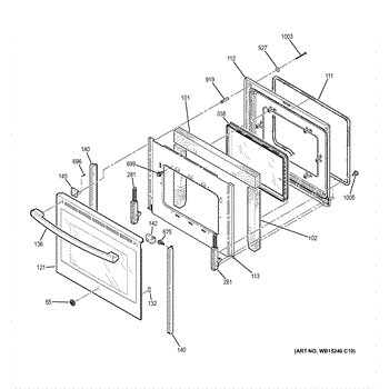 The Handle and End Cap Assembly is an OEM part for GE ranges. It includes both the oven door handle as well as the decorative end caps that cover connections on the door frame. This assembly is responsible for providing an accessible and ergonomic solution for opening and closing the oven door.