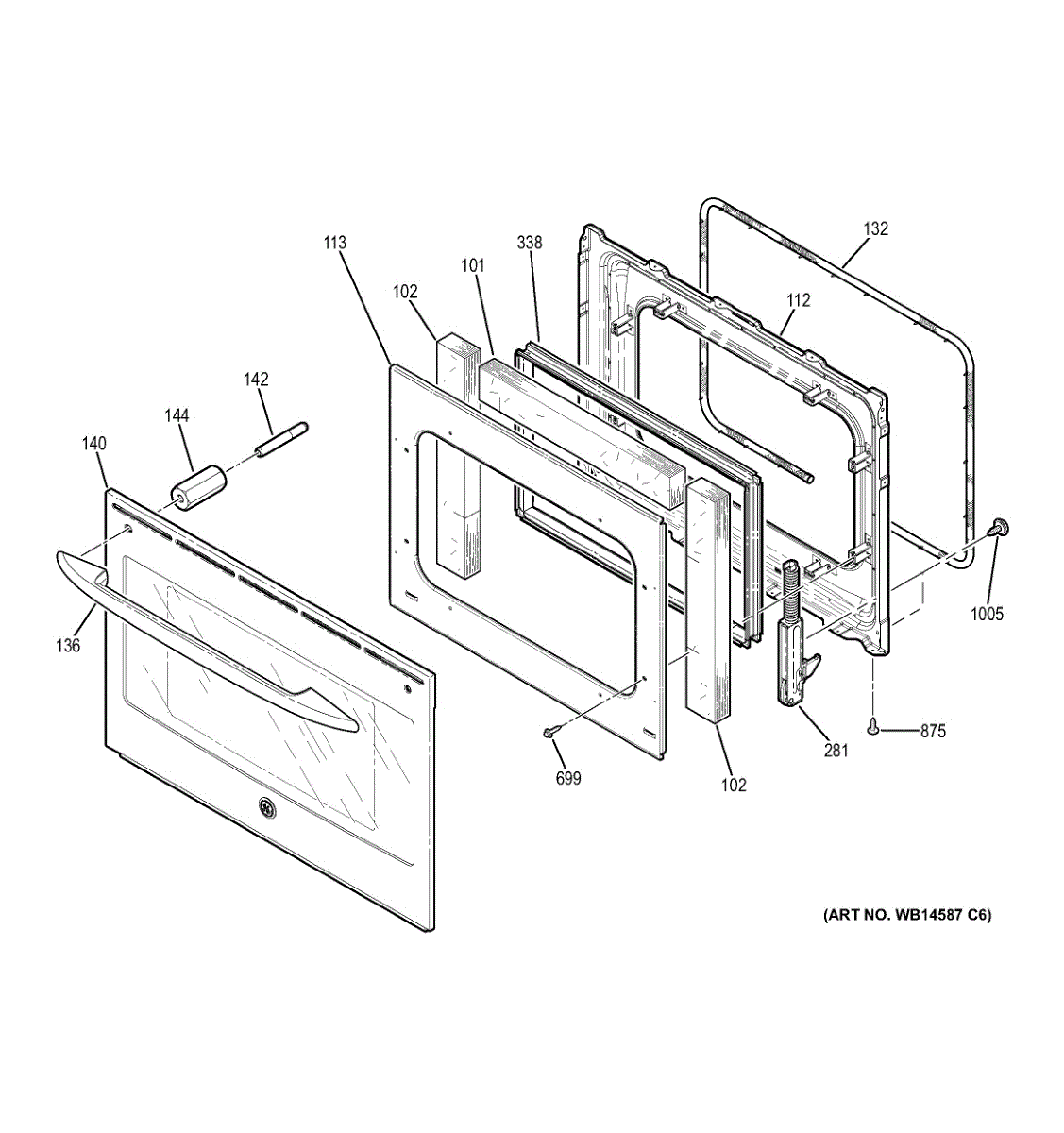 Thermal insulation pad that installs inside the range oven door. Replace if torn, compressed, missing, or no longer retaining heat effectively.