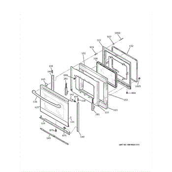 The Side Door Trim is an OEM part for GE ovens. This trim piece is designed to fit along the edge of the oven door, providing a finished look and helping to seal the door properly when closed. It contributes to the overall aesthetics of the oven and ensures efficient heat retention during cooking.