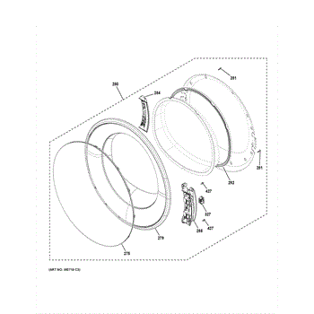 The Door Cover is an OEM part for GE dryers. Located on the external door, this cover protects the door lining while enhancing the dryer's aesthetic. It is responsible for safely concealing inner components from external impact or damage.