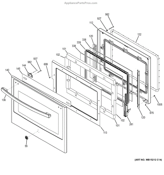 Stainless steel outer door assembly for wall ovens. Replaces cracked, dented, or cosmetically worn exterior door panel. Restores appearance.