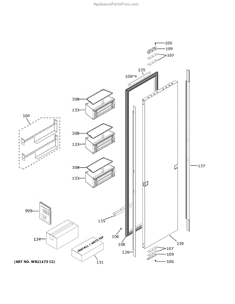 This hinge-side door trim covers and protects the edge of the refrigerator door where the hinge mounts, restoring a clean finished appearance and replacing cracked or missing trim pieces. What it does