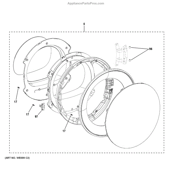 This is a replacement dryer door that restores proper closure and protects the drum opening. It replaces a dented, cracked or warped front door to improve safety and keep laundry contained during drying. What it does: