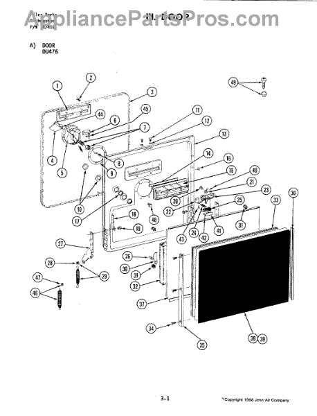 This factory screw secures appliance components to their mounting points. Replace missing, worn, or stripped hardware to restore a tight fit, proper alignment, and quieter operation across the affected assembly.