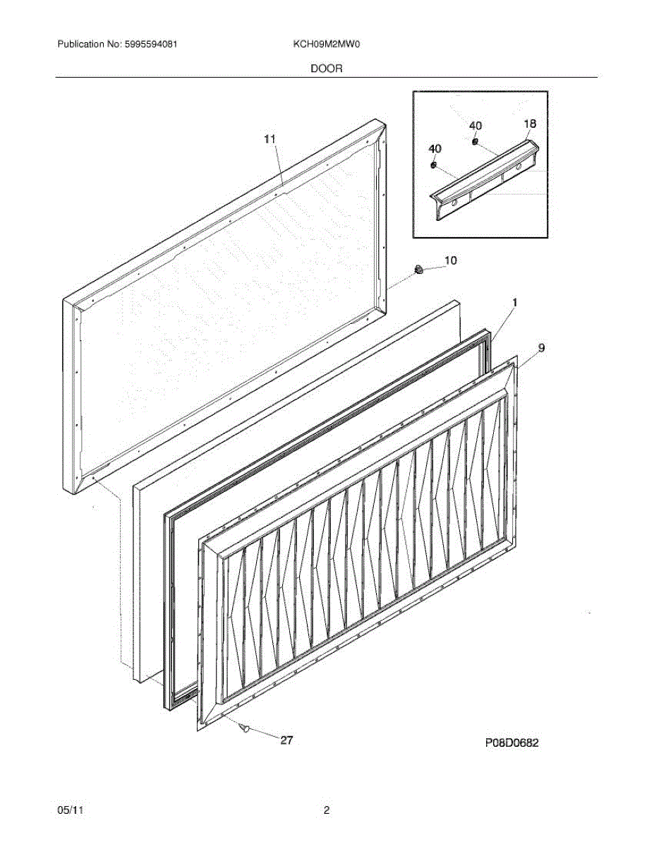 Outer door panel for chest freezers. Covers the exterior lid surface. Replace if cracked, dented, discolored, or damaged from daily use or impact.