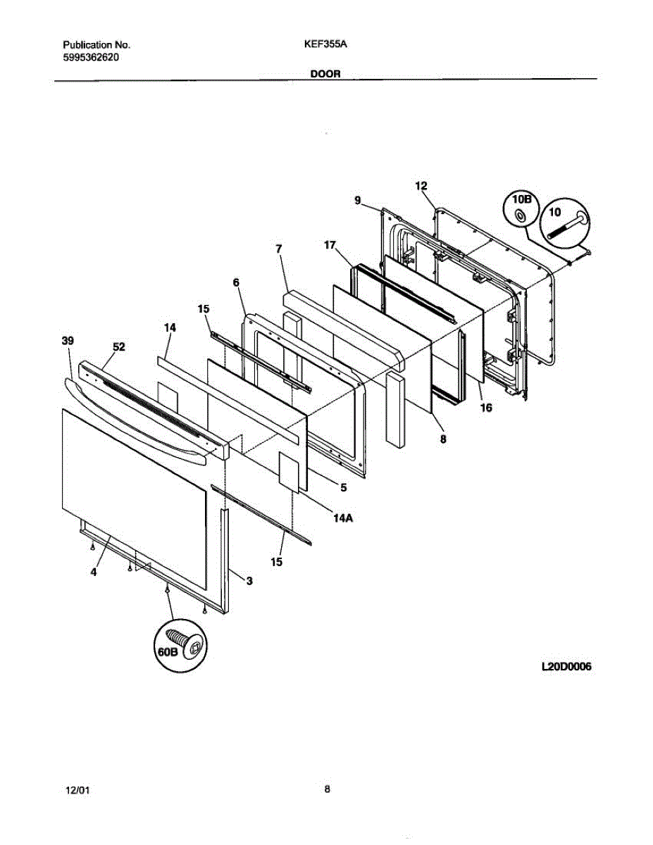 Inner door glass panel for range and wall oven doors. Replace if cracked, shattered, or slipped out of position. Installs between outer glass and oven cavity.