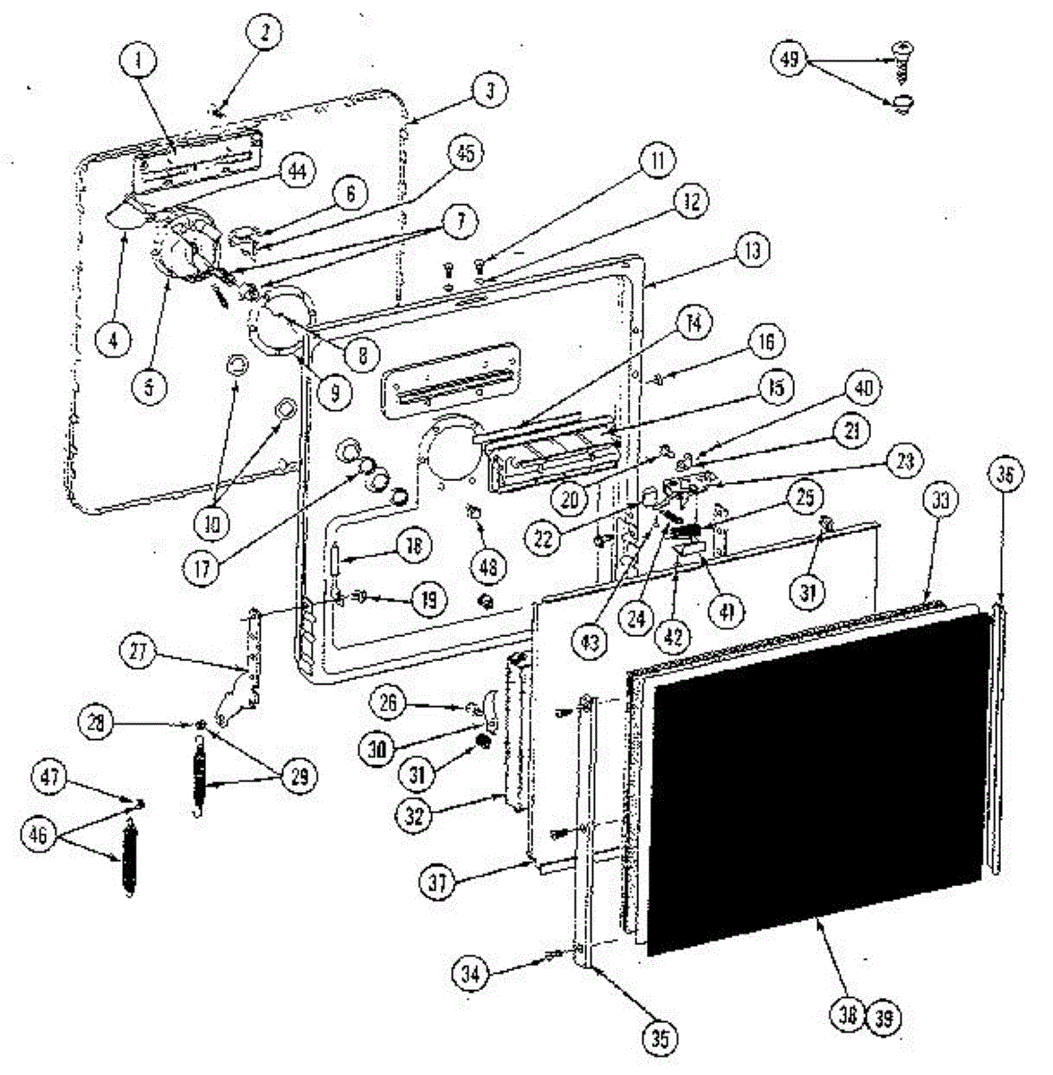 This factory screw secures appliance components to their mounting points. Replace missing, worn, or stripped hardware to restore a tight fit, proper alignment, and quieter operation across the affected assembly.
