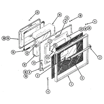 Maintains oven door structure and secures the glass panels in place. Replace if cracked, broken, or missing to restore proper door assembly and fit.