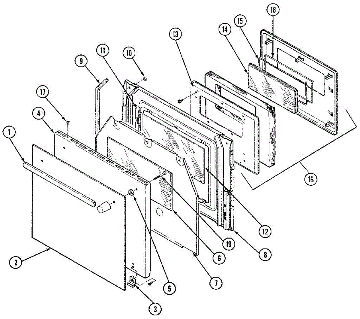Spacer that fits between inner and outer oven door glass panels to maintain proper gap and alignment. Replaces missing, cracked, or damaged spacers.