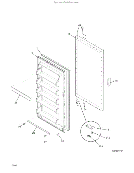 This outer door panel replaces a damaged or worn exterior refrigerator door surface to restore appearance and protect internal door components. It provides a finished exterior and covers the liner, insulation, and mounting points. What it does: