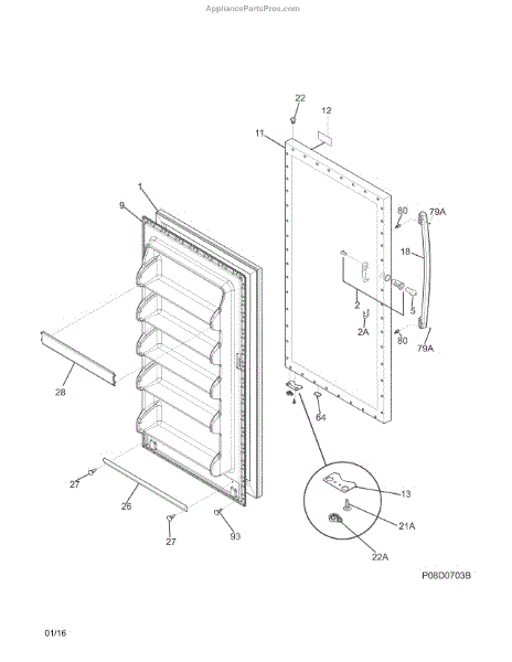 This is an outer door panel that is used with refrigerators. The outer panel is the part of the freezer that users have contact with when using the appliance. It works in tandem with an inner door panel to keep the freezer cold. The outer door panel also offers protection from impact associated with the freezer. It's made of durable materials but can experience wear and tear or damage and require replacement.When replacing the outer door panel of the freezer, make sure the appliance is unplugged. Remove the trim and the magnetic caps on the hinge side of the freezer. Keeping the door closed, push on the panel from the hinge side to disengage it from the brackets. The panel will come off and can be placed to the side. The new outer door panel can be placed in the same location before reassembling the door. Plug the freezer back in before use.This is a genuine OEM replacement component that has been directly sourced from the manufacturer. The outer door panel is sold on an individual basis. The part is made to be used with freezers by Crosley, Frigidaire, and Kenmore.