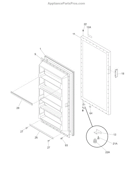 Parts for Kenmore 253.28262806 (25328262806, 253 28262806): Door Parts