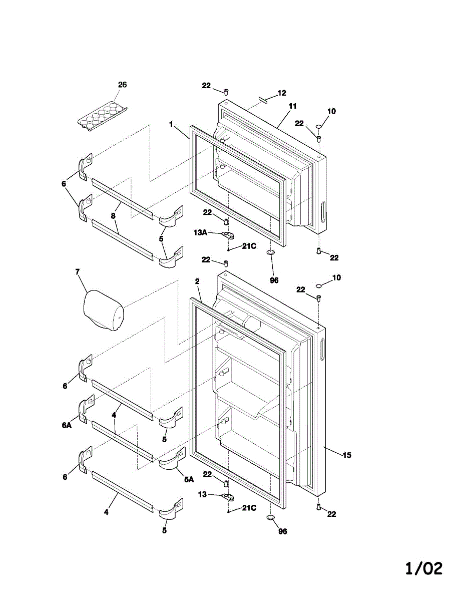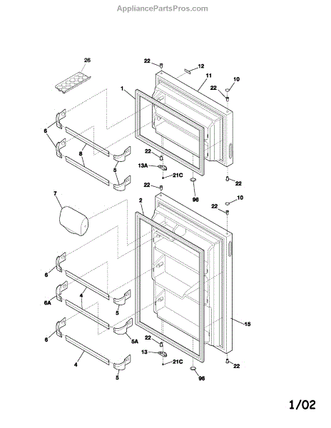 Seals the freezer door to prevent cold air loss and frost buildup. Replace when torn, hardened, or not sealing properly. Confirm fit by model number.