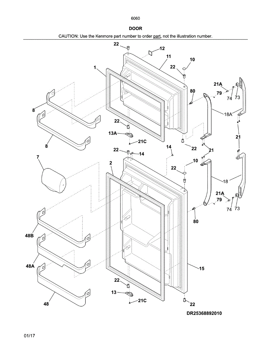 This full refrigerator door replaces a damaged or worn outer door to restore the appliance's appearance and proper access to the fresh-food compartment. It provides a solid closure surface and helps maintain normal cooling performance when properly installed. What it does: