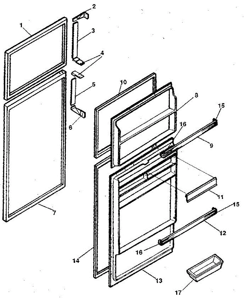 Egg container for refrigerator door storage. Replace if cracked, broken, or missing. Holds eggs securely in fridge door shelf compartment.