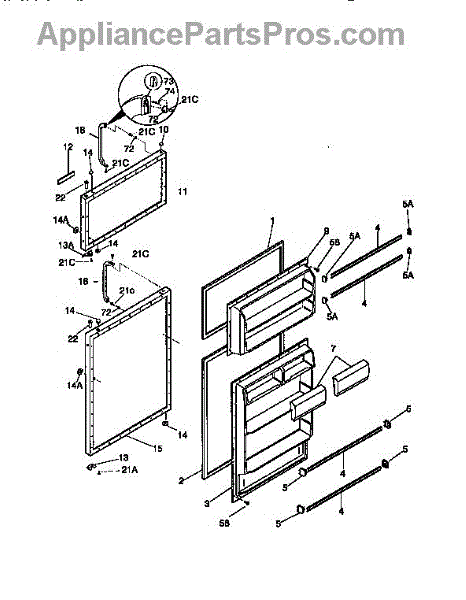 Parts for Kenmore 253.9368420 (2539368420, 253 9368420): Door Parts