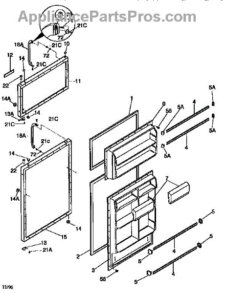 Parts for Kenmore 253.9368742 (2539368742, 253 9368742): Door Parts