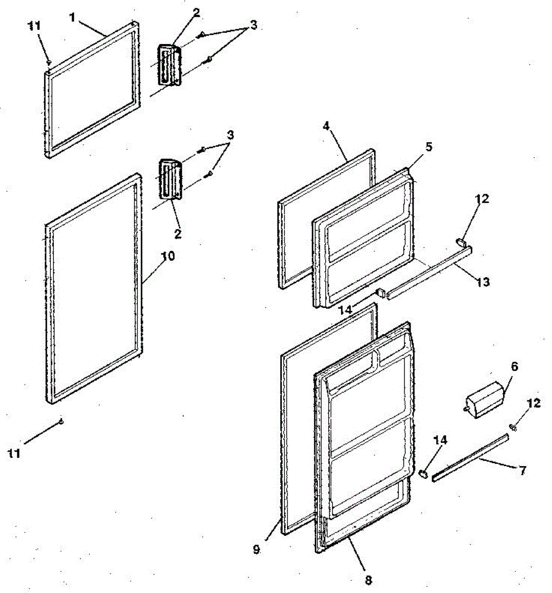 Parts for Kenmore 253.9605000 (2539605000, 253 9605000): Door Parts