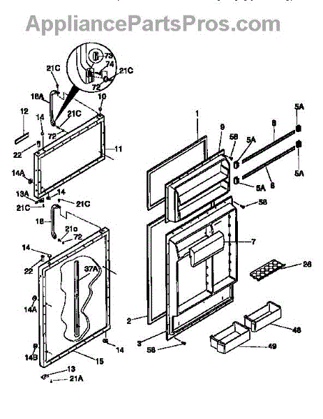 Parts for Kenmore 253.9658310 (2539658310, 253 9658310): Door Parts